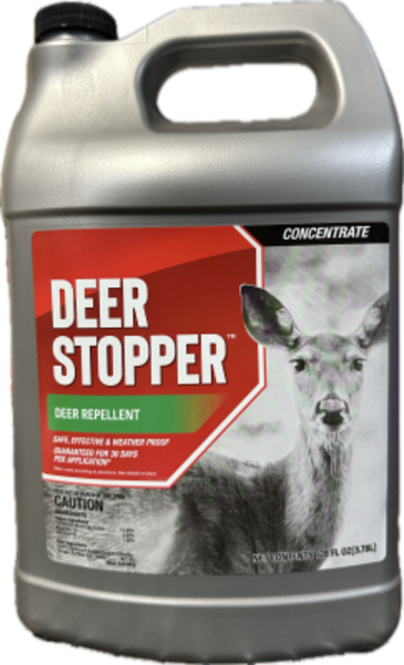 Deer Stopper is a powerful natural formula that uses plant extracts instead of harsh chemicals to deter deer, moose and elk from bedding down, rubbing, foraging damage, and eating your garden plants & flower beds. It dries clear and is odor free. It will not stain cement, walkways, parks, asphalt or turf areas. Guaranteed 30 days effective per application all year round regardless of rain; weather and watering.